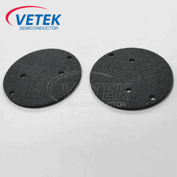در تجهیزات رسوب بخار شیمیایی (CVD) ، به عنوان یک صفحه توزیع گاز ، از منافذ برای انتقال یکنواخت گازهای واکنشی (مانند SIH₄ ، NH₃) برای بهبود یکنواختی رسوب فیلم نازک استفاده می شود.